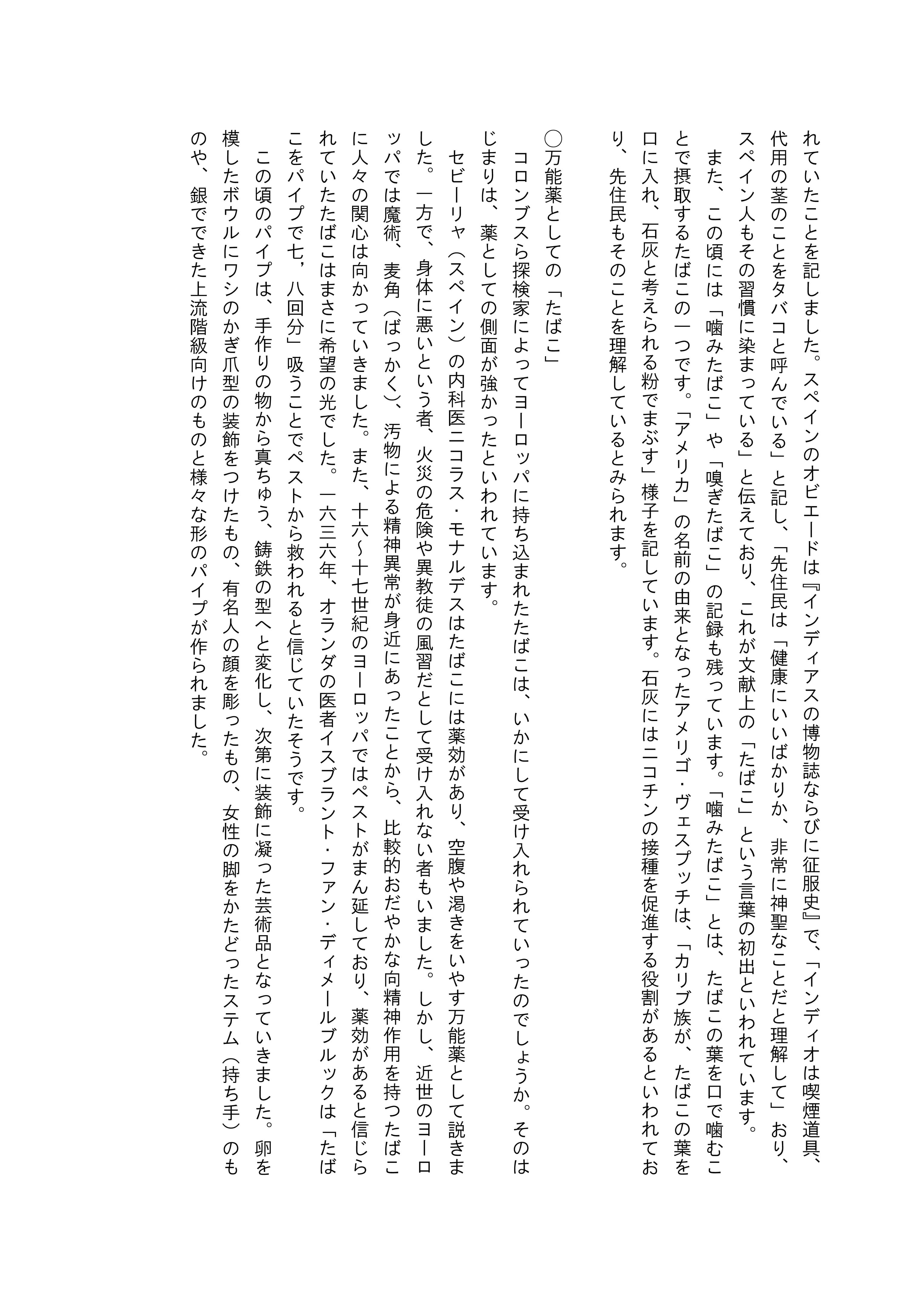人と「たばこ」の出会いから、現在まで親しまれてきた「たばこ」の発展と規制の歴史を考察。